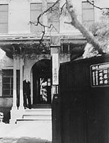 玄関だけ洋風でね、いま考えるとパラディアン・スタイルというのかな、柱が2本ずつ両側に立った左右対称の家で、上げ下げ窓のある白亜のしゃれた家で、ずっと奥深いんですが、中庭があって、その一番奥にすんでいたのです。