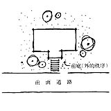 そういったことは、住宅の配置計画などでもあるのでありまして、たとえば、これをわが国の住宅の配置というふうに考えてみますと、道路がありまして、ここに一軒の家の塀があるとしますと、この塀に囲まれた中の空間はいったいどういうことかといいますと、少なくとも自分の土地でありますから、これは、自分が勝手にしていいところの土地であるというふうに考えられますから、これは、完全に内部の空間である、あるいは、内的秩序の空間であるというふうに考えられます。それに対しましてこれは、たとえばアメリカあるいはオーストラリアのシドニーあたり行ってみますと、道から非常に綺麗な家が建っております。ここに、いわゆるフロント・ガーデンというのがございます。フロント・ガーデンはいったい誰に属するかといっていろいろ考えてみますと、ここに窓がありますが、実際この家の中に入ってみますと、窓からこのフロント・ガーデンはあまりよく見えない。その代わり、道を歩いている人には非常によく見えるのであります。また、この辺の庭に関しましては、隣近所も非常に注意をはらっておりまして、きたなくすることに対して非常に批判もあるし、また、奇麗な庭を造れば、コンテストによって表彰されることもある。この辺の空間は、たしかに家の前の空間であるには違いないけれども、質的に、あるいは、市民感情として、意識の上で外部ということがいえると思うわけです。これは、全く同じ家の前の空いている空間でありますが、そのように違うということがいえます。