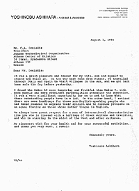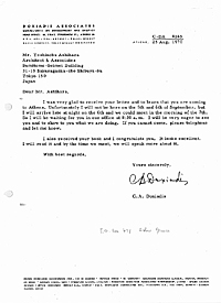 | ドキシアディスからの手紙 1970年8月25日 芦原さん あなたがアテネにいらっしゃるとのお手紙うれしく拝見しました。残念ながら9月5日と6日は出かけていますが、6日の夜遅く帰るので7日の朝にはお目にかかれます。8:30にオフィスでお待ちしています。あなたには是非お目にかかって、今私どもがやっていることをご紹介したいと思います。もしいらっしゃれなければ電話でお知らせください。 ご本受取りました。お祝い申し上げます。大変おもしろそうです。お目にかかるまでに読んでこの本のことをお話ししましょう。 御大切に 芦原義信からドキシアディスへの手紙 1972年8月1日 ドキシアディスさんへ 私と家内、息子にとってデロス10に出席したことは大いなる喜びであり、感謝いたします。あれからイタリア、スペインを旅して日本に昨日無事帰ってきました。 私はデロス10はデロス9よりもっと刺激的で実り多かったと思います。世界の傑出した人々がどのようなことを考えているのかを知ることは大変有意義なことです。一方英語を話すことの少ない人々にとっては、母国語としている人々の中で、自分の意見を述べたり、問題について論じたりする機会が少なく、かなりのハンディキャップがあると感じました。 私どもはかねがねあなたの様な国際的で、しかもギリシャの文化伝統をそなえ、西欧とその他の文化の中に立って活躍している方を尊敬しています。 くれぐれもお体を大切に、ますますのご活躍を期待しております。 芦原義信 デロス会議とは (Mother GAIA Summitより抜粋) デロス会議は、1963年、世界を代表する学者・実務家・建築家などが、ギリシャ・エーゲ海の無人島デロス島に集まり、急激な人口爆発にともなう、都市問題を初めとした世界の諸問題を解決し、地球上における人間の居住をどうするのかについて総合的・学際的な枠組みを研究提案するために開催されました。 参加者は、歴史学者・アーノルド・トインビー、人類学者マーガレット・ミード、経済学者バーバラ・フォード、ノーベル賞受賞者で生理学者C.H.ワディントン、メディア研究者マーシャル・マクルーハン、未来学者ハーマン・カーン、社会学者スーザン・ケラー、同じく磯村英一、建築家としては、丹下健三、バックミンスター・フラー、英国のリチャード・レウリン・デーヴィス、都市デザインのエドモンド・ベーコン、英国の都市計画者コーリン・ブカナン、理論家としてCIAM事務局長ジークフリード・ギーデオン、ハーバード大学教授ジャッキー・ティルウッドなどの錚々たるメンバーでした。 <・・・> 会議の主宰は、コンスタンティノス・A・ドキシアディス博士で、ギリシャの戦後復興に尽力した建築家・都市研究家であり、パキスタンの首都イスラマバードの設計を初めとする実績を持つ政策官で実務家でもありました。 <・・・> デロス会議 我が軌跡を語るより抜粋 人生で非常に思い出深いものは何かといったら、やっぱりドキシアディスのデロス会議に参加したことですね。 <中略> 行ってみて驚いたんですが、アーノルド・トインピー夫妻からマーシャル・マクルーハン、ハーマン・カーン、エドワード・ホール、ローレンス・ハルプリン、ハリソン・ブラウン、ルネ・デュボスとか、著名な人がゾロゾロきている。それが船の中で家族もろとも1週問をいっしょに過ごす。ウチの息子もハンス・アスプルンドの息子と同じ船室になって、インフォメーションを印刷させられたり配ったりして、それですっかり仲よくなって帰途、息子ひとりでスウェーデンのアスプルンドの家にも行ったりしたんです。とにかく午前中会議をやって、午後そこで泳いで、そしてディナー食べて、夜寝ている間に次の島に行く。そこでまだ会議をやる。本当にみんな仲よくなるし、本当に素晴しかったですね。 |