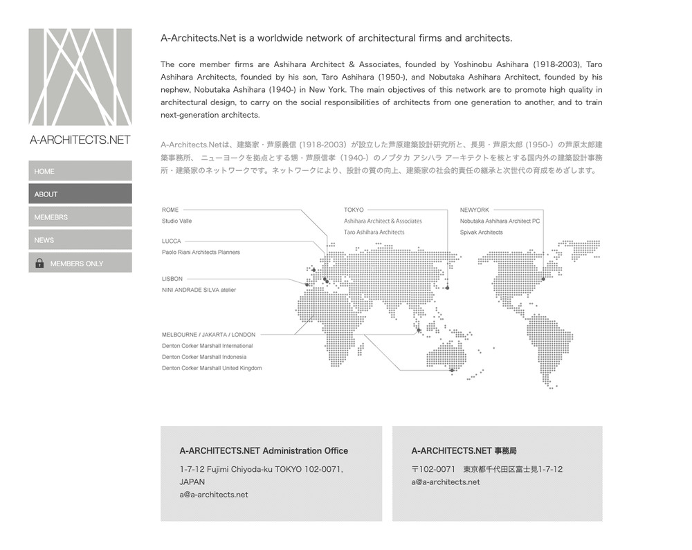 建築家・芦原義信 (1918-2003)が設立した芦原建築設計研究所と、長男・芦原太郎 (1950-)の芦原太郎建築事務所、 ニューヨークを拠点とする甥・芦原信孝(1940-)のノブタカ アシハラ アーキテクトを核とする国内外の建築設計事務所・建築家のネットワークです。
